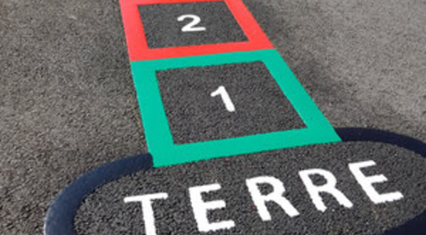 Cour des maternelles : Installer un parcours vélo et parcours motricité avec une marelle en thermocollé
