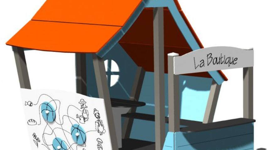 cabane boutique plus spacieuse, plus colorée et plus moderne, qui sera installée sur du gazon synthétique.