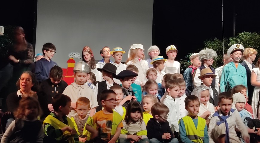 Cette année, nous avons souhaité travailler autour de la cohésion d’école à travers la découverte de la Normandie. Dans ce cadre, nous avons réalisé un grand spectacle « La Mystérieuse malle normande » où l’ensemble des élèves de l’établissement étaient acteurs. Les classes étaient mélangés.