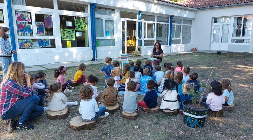 L’école se situe dans un parc arboré propice aux apprentissages en extérieur afin d’apprendre « autrement ».
