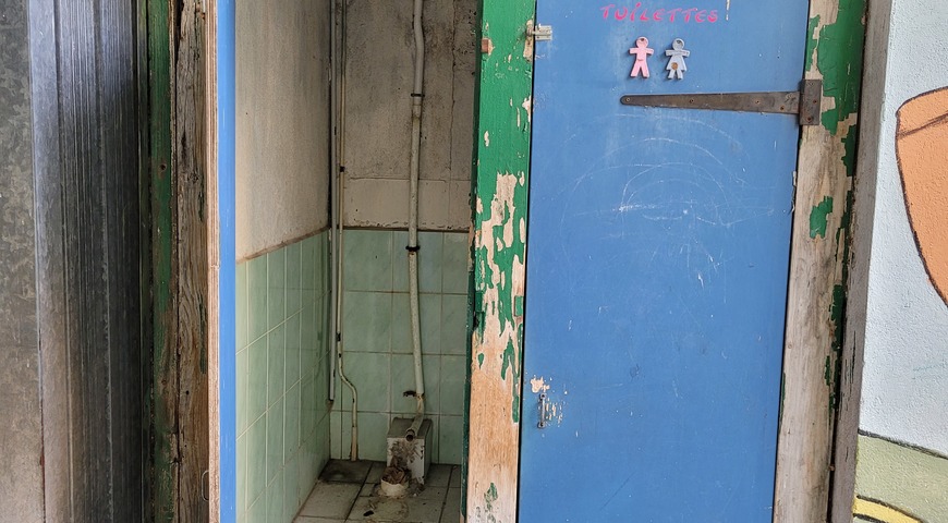 A ce jour, la classe maternelle multi-niveaux de l'école n'a pas de toilettes à proximité. Les élèves doivent traverser deux cours de récréation afin de trouver des WC adaptés !