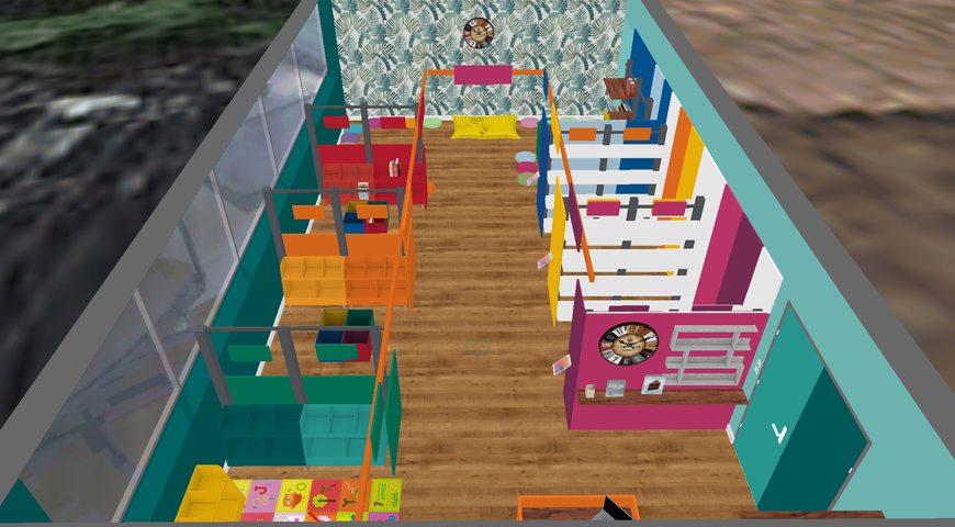 Achats de nouveaux livres, décoration enrichie et aménagements supplémentaires (coussins, banquette...) viendront agrémenter le rendu final :)