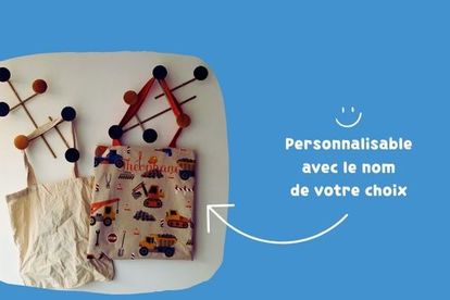Une jolie carte dans un tote-bag en tissu personnalisable à votre nom ou celui de votre enfant ! ★