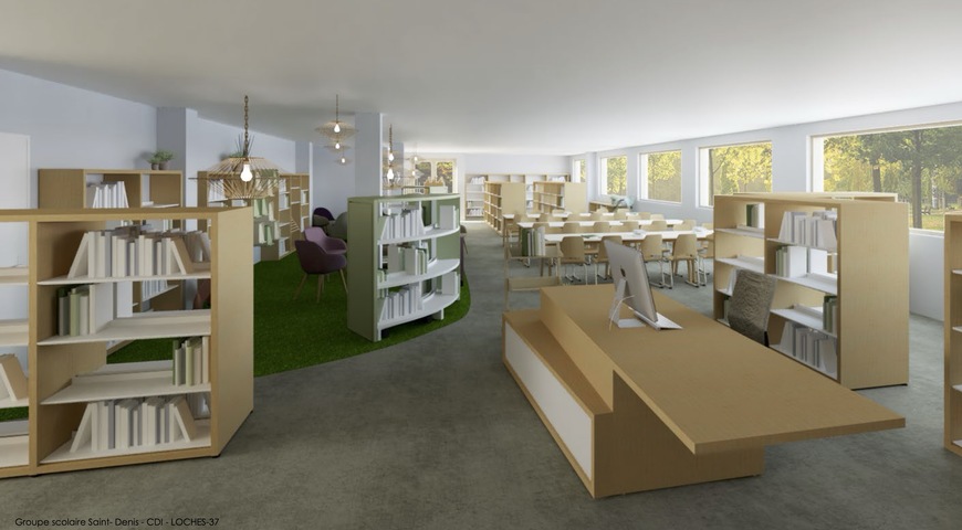 Sol, peintures, mobilier, réfection complète de ce lieu de travail pour les élèves.