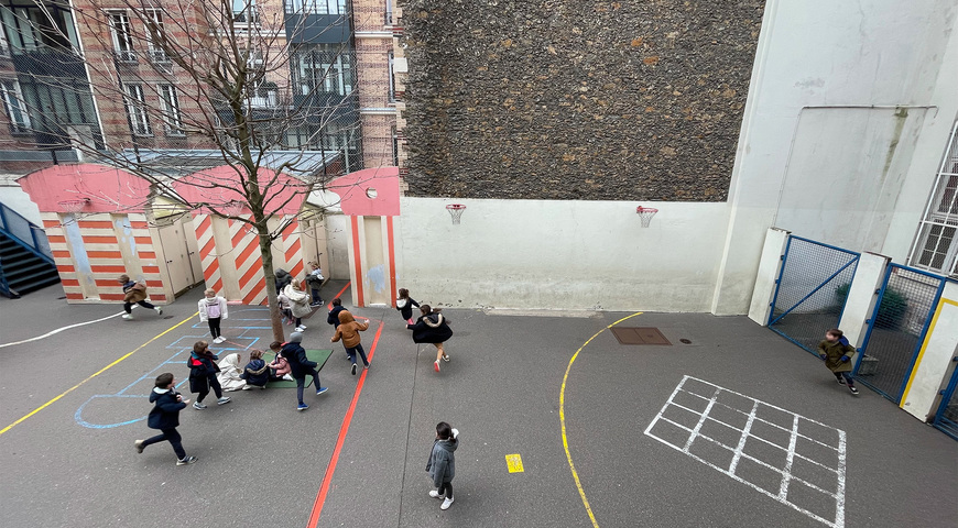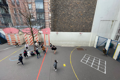 L' idée est de réaliser d'ici début juin 2024 une fresque murale d'extérieur durable (dans la cour du bas, photo ci-jointe). L'ambition est que l'ensemble des enfants travaille à la réalisation de cette fresque, des plus petits, qui observeront la fresque qui se développera sous leurs yeux aux plus grands qui y participeront activement (à partir du primaire).
