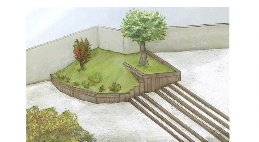 Ce projet implique un terrassement, la création d’un escalier en bois reliant 2 petites terrasses et l’aménagement d’un espace végétalisé avec des bancs. Les matériaux choisis sont en cohérence avec notre label EDD (Education au Développement Durable). Les élèves seront impliqués dans l’entretien de ce nouvel espace.
