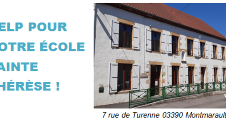 L'école Sainte Thérèse est située à Montmarault dans l'Allier. Sous contrat avec l’État, c'est une école privée catholique qui accueille 88 enfants répartis dans 4 classes de la petite section au CM2.