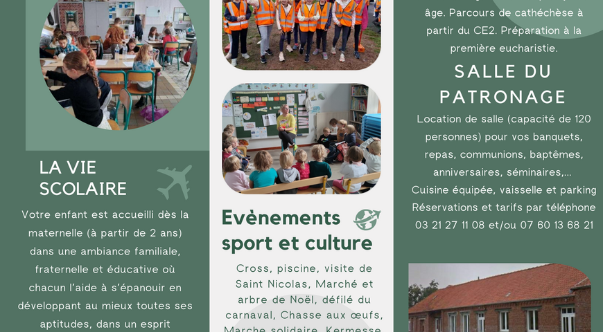 Petite école maternelle et primaire composée de quatre classes de la petite section au cm2 ( 90 élèves). L'école se situe au centre du village à proximité d'un cadre verdoyant. C'est une école qui accueille en toute confiance tous les enfants. La communauté éducative, à travers son projet éducatif, est bienveillante à l'égard de tous et place l'enfant au centre des projets.