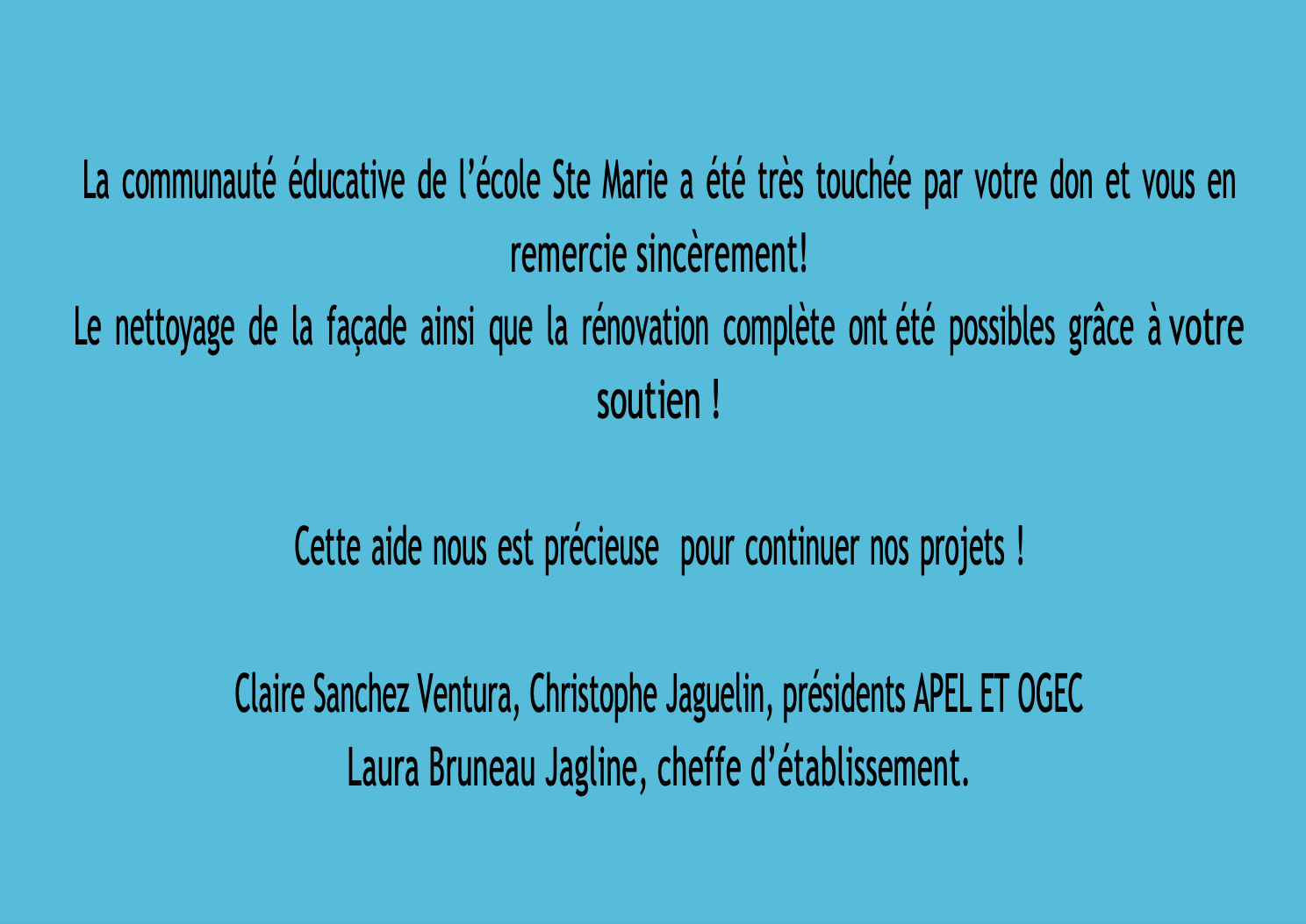 Nous espérons qu'un nouveau projet éducatif permettra aux élèves une scolarité sereine pour s'épanouir dans un contexte innovant.
