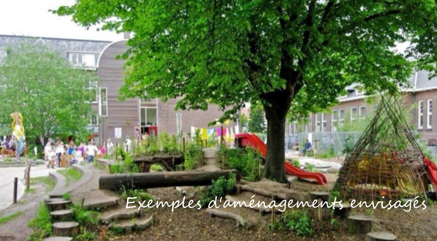 Le financement que nous vous demandons servira à concevoir un projet global avec les paysagistes MAP et faire les premiers aménagements de la cour enherbée.
