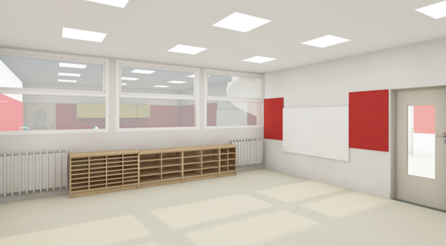 Le projet de rénovation des classes est de grande ampleur. Il intègre aussi les luminaires, des faux plafonds pour améliorer la sonorisation, la remise à neuf de l'électricité, la peinture, un nouveau sol ...