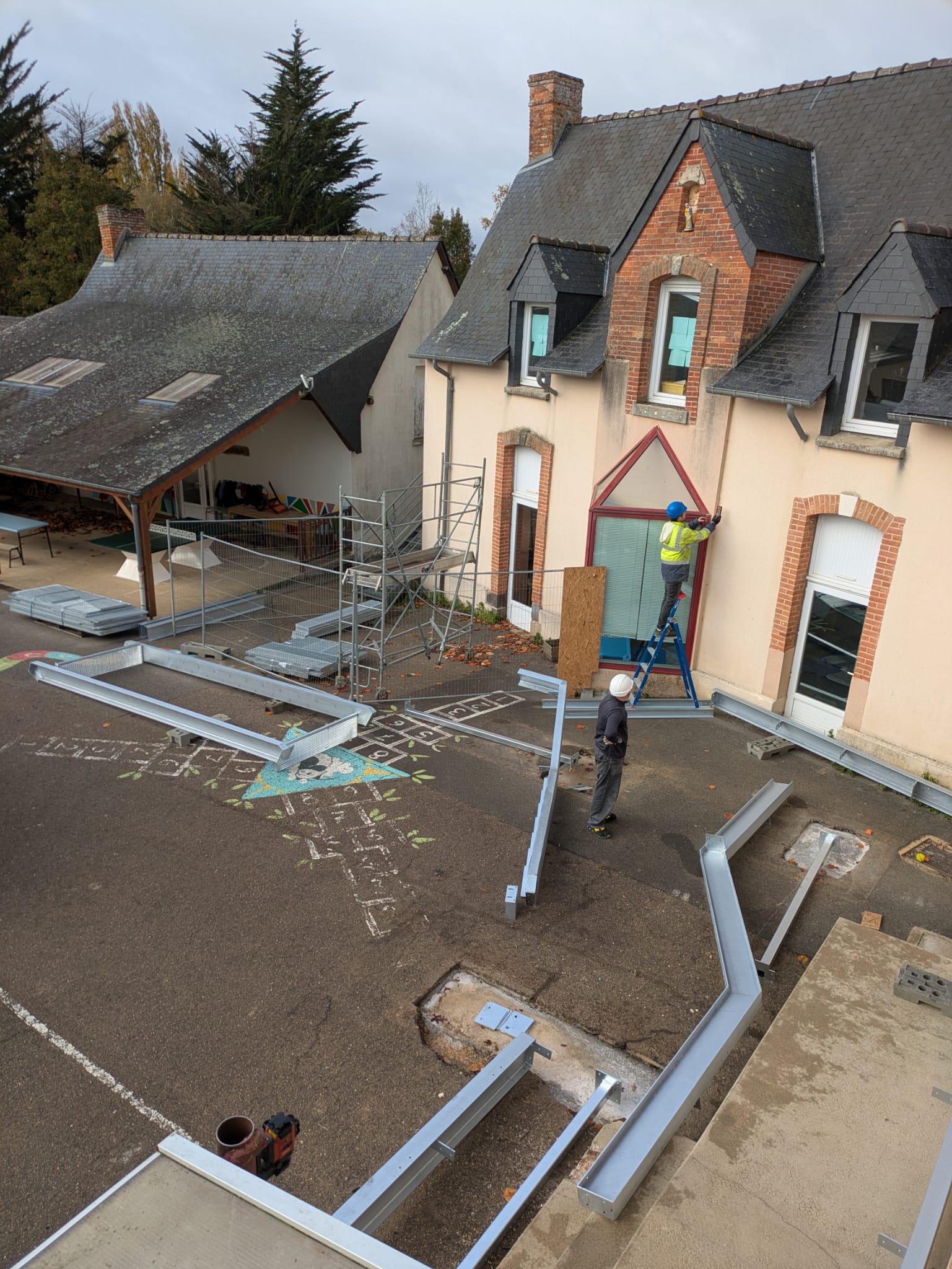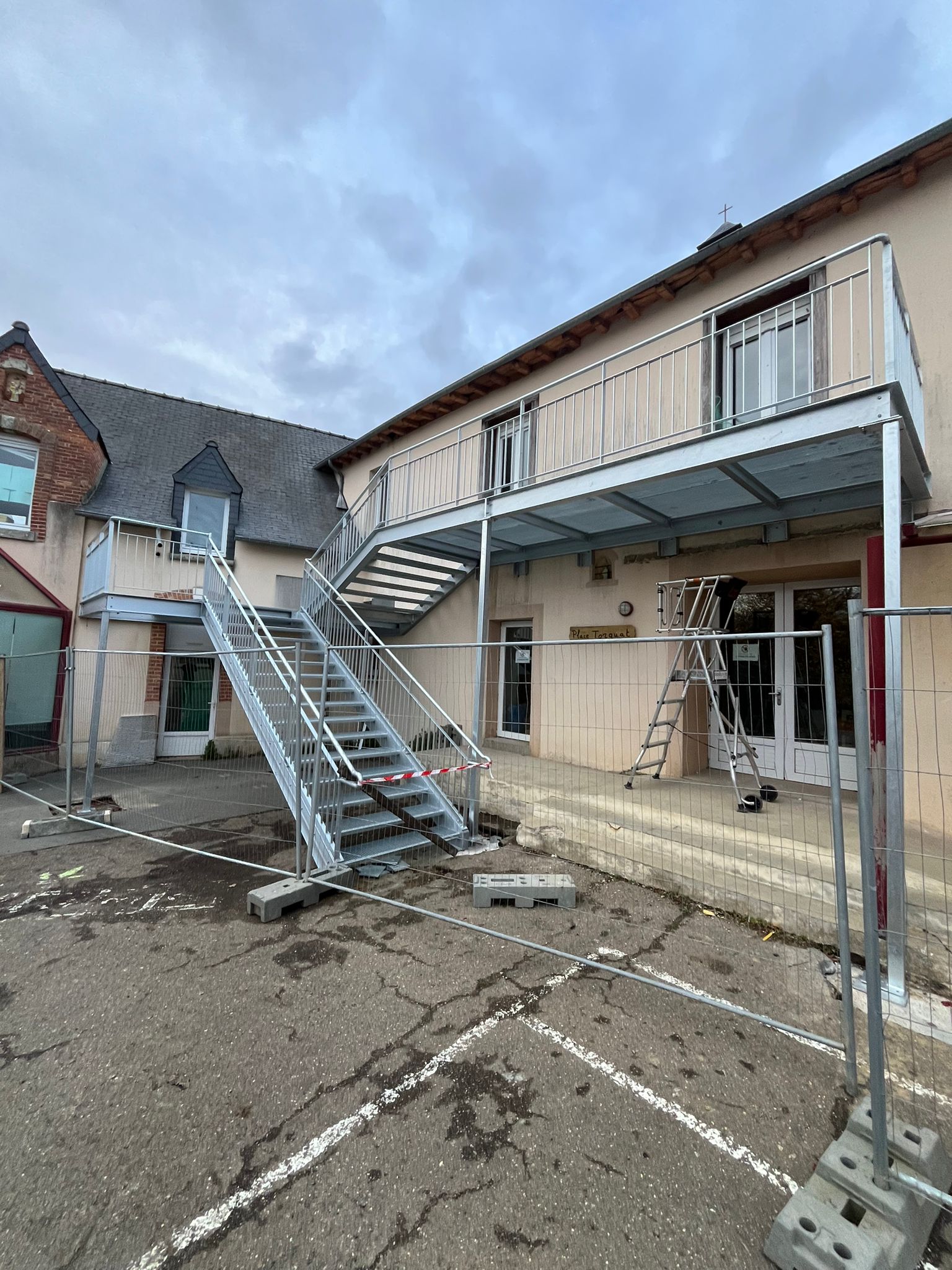 La nouvelle passerelle est désormais en place ! Elle permet d'accéder aux deux nouvelles classes créées à l'étage, ainsi qu'à une classe déjà existante.