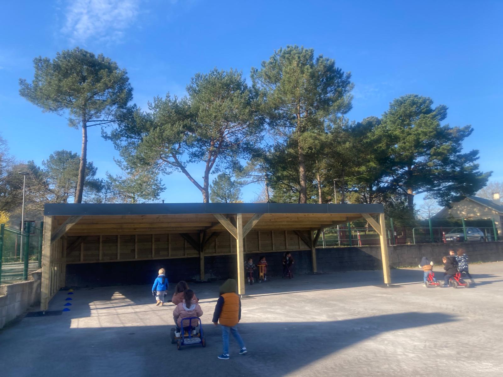 Pour que les enfants puissent s'abriter par tous les temps et profiter un maximum de leur jolie école