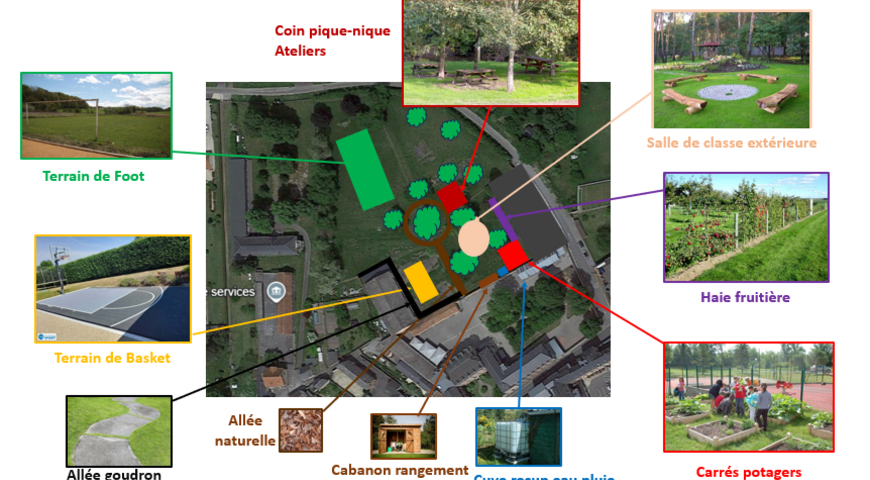 Nous avons le projet de créer un terrain de basket qui permettra aux élèves de pouvoir jouer en équipe lors des récréations.
