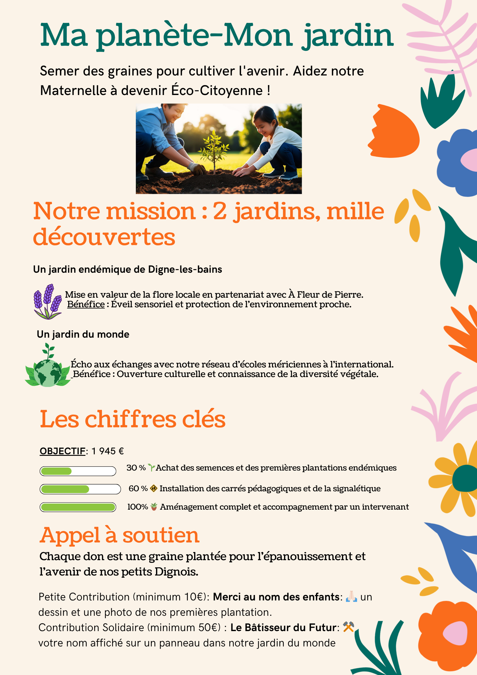 Si nous parvenons à dépasser notre objectif, pourquoi pas étendre notre projet en réalisant un mur végétal au sein de notre cour de récréation.