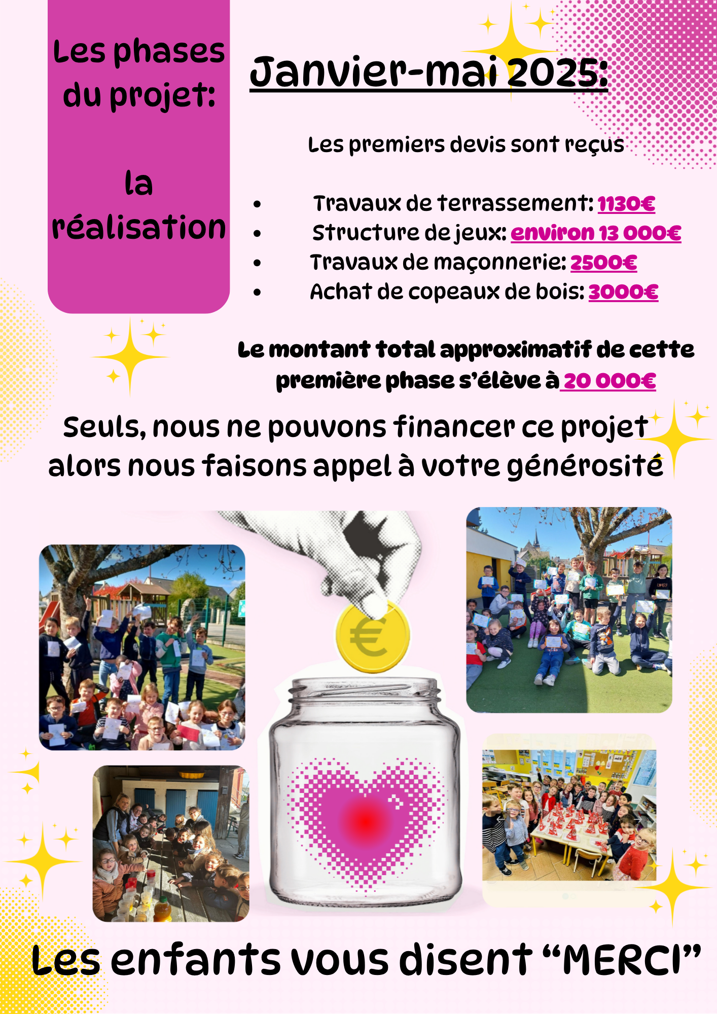 Tous les donateurs à partir de 100€ auront leur nom affiché sur une plaque qui sera placée près de la structure de jeux, en mémoire de cette action.