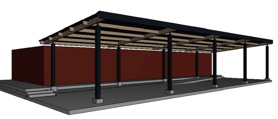 Le projet consiste en la création d’un préau de type auvent couvert mais ouvert sur les côtés, implanté juste devant les bâtiments modulaires dédiés aux salles d’activités multiples. Ce préau est destiné à protéger les élèves des intempéries dans la cour, sur une surface couverte de 190.96 m².