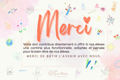Cette première phase de travaux permettra de consolider les fondations des planchers. Chaque don, même modeste, constitue un pas de plus vers la réalisation de notre projet et vers un environnement de déjeuner plus confortable pour les élèves, afin que ce moment reste chaleureux et propice aux apprentissages.