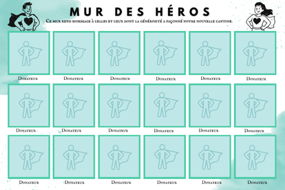Tous nos donateurs verront leur nom, s'ils le souhaitent, sur le mur des héros de notre cantine.