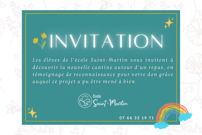 Tous les donateurs de 50€ et plus recevront une invitation pour visiter nos nouveaux travaux et l'inauguration de notre nouvelle cantine