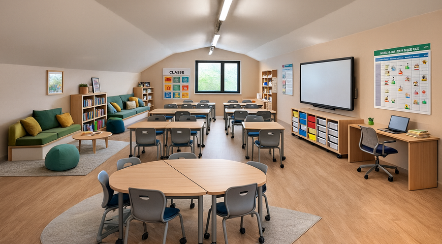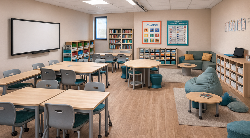 L’acquisition de mobilier flexible et modulable, conçu pour s’adapter aux besoins des activités : travail de groupe, ateliers, temps calmes, expérimentations, ou encore projets interdisciplinaires. Ce type d’environnement favorise la coopération, l’autonomie et la créativité, tout en améliorant le confort et l’engagement des élèves.