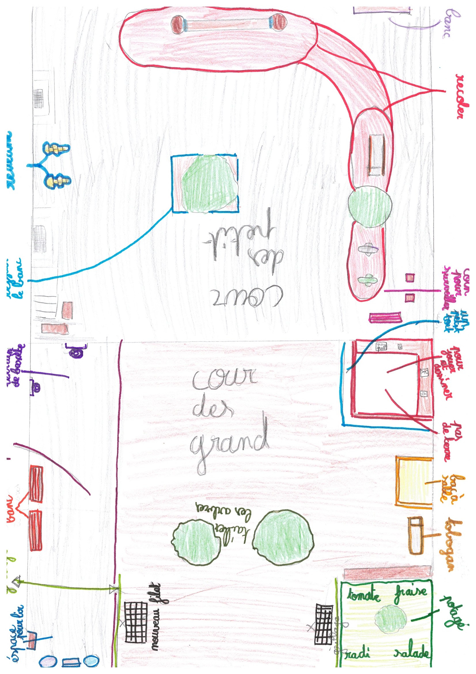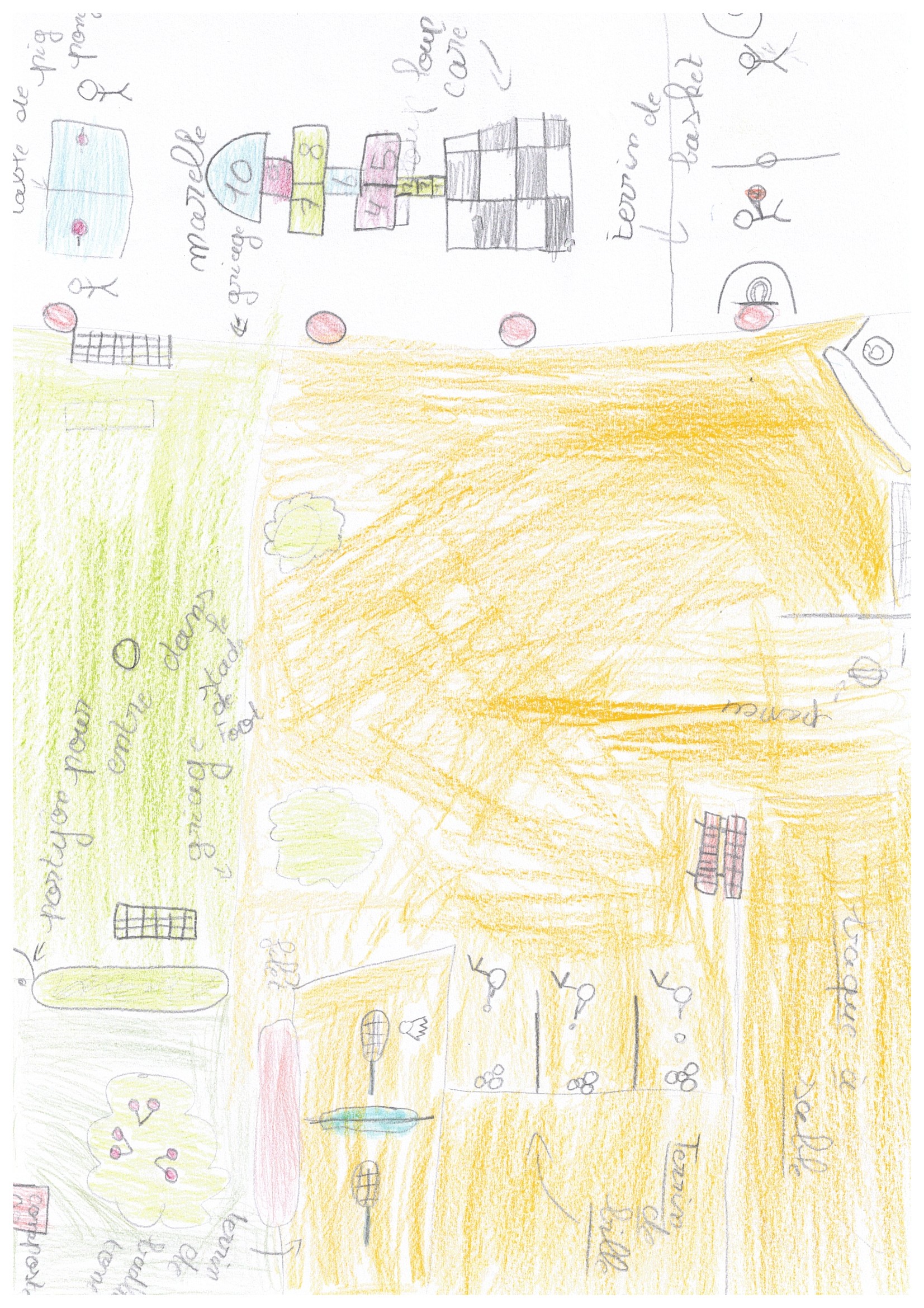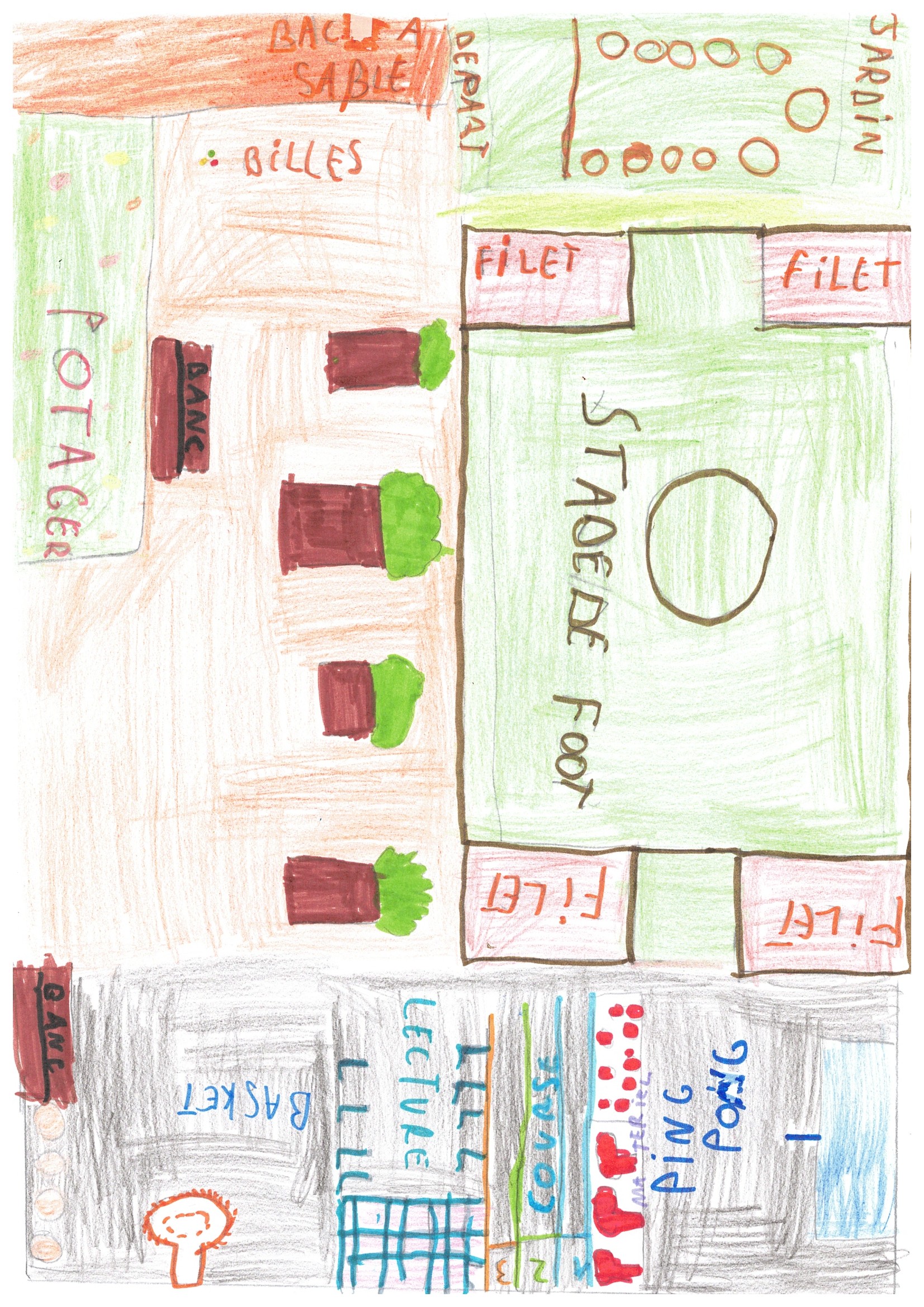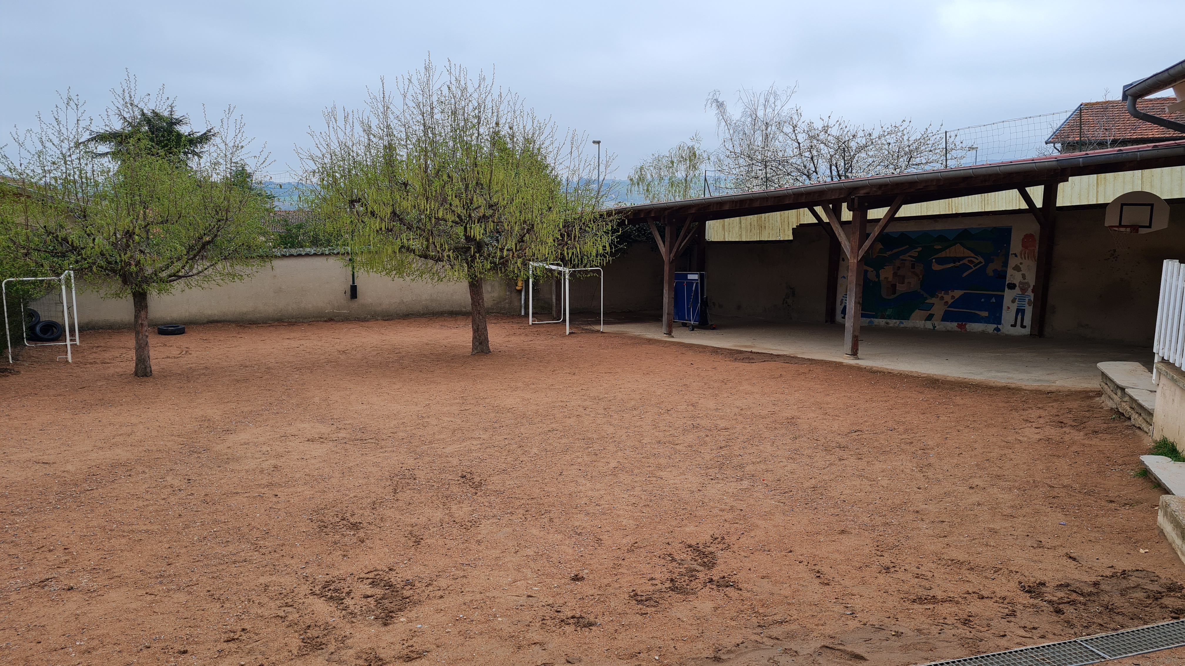 Le projet que nous portons est ambitieux : nous allons terrasser le terrain pour créer des zones planes et distinctes. D'un côté, un espace sportif clos (City Stade) permettra aux fans de ballon de se dépenser sans gêner les autres. De l'autre, une vaste zone plane accueillera des jeux variés (marelles, cordes à sauter) et des temps de motricité. Enfin, nous préserverons notre cerisier pour y aménager un coin calme et nature. L'objectif est simple : pacifier la récréation et permettre aux petits comme aux grands de cohabiter sereinement et pourquoi pas faire l'école en extérieur les belles journées !