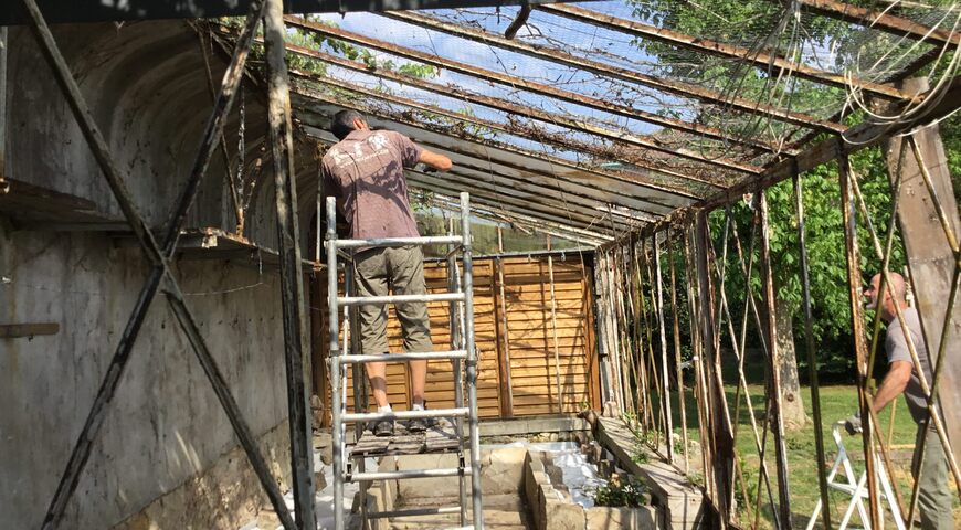 Depuis quelques mois, nous avons lancé un projet de rénovation de cet espace unique, en partenariat avec les Compagnons du Tour de France. Un groupe d’adultes de l’établissement s’est déjà mobilisé pour nettoyer, débroussailler, retirer les vitres, gratter la structure et préparer le chantier. Suivront des travaux de maçonnerie, la restauration de la structure et des portes, la pose d’une nouvelle couverture, ainsi que l’installation de châssis et de parois vitrées sécurisées.