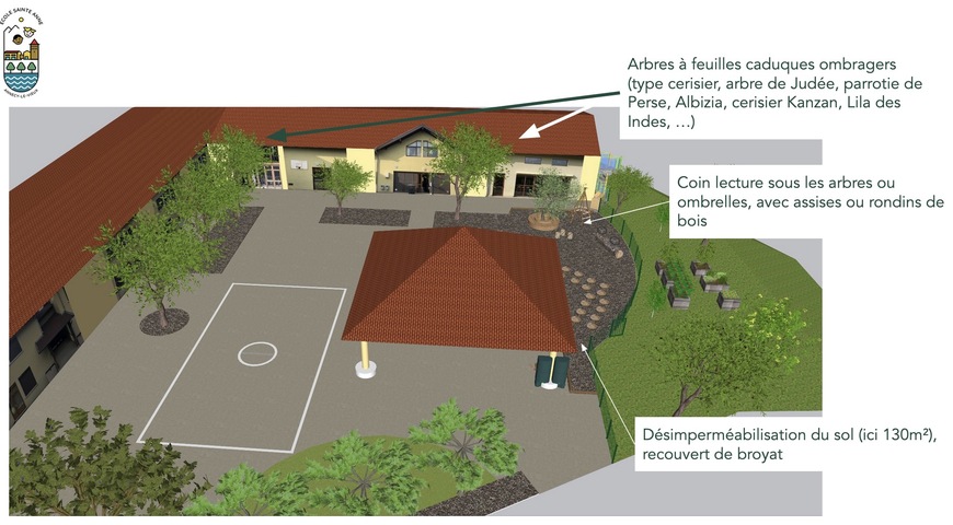 Si la collecte dépasse l’objectif initial, cette dynamique pourra être amplifiée : la zone permaculture pourra être enrichie et étendue, et d’autres espaces de la cour pourront être transformés. Par exemple, l’amphithéâtre pourrait devenir un véritable lieu d’enseignement en plein air, et la cour annexe côté maternelle accueillir des espaces de culture adaptés aux plus jeunes.