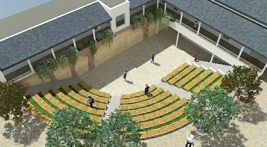 Le végétal, c'est du lien social : un espace ombragé, de la fraicheur, des bancs pour s'asseoir, bavarder ou jouer aux cartes : c'est le chemin de la sérénité ! Cette démarche végétale est dans la logique de l'aménagement des cours de récréation.