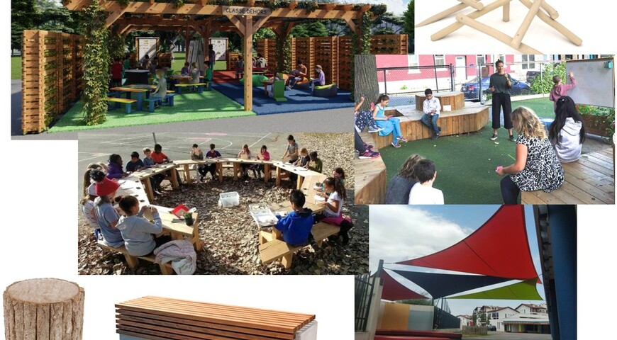 - Un mobilier naturel : Matériaux pour la confection des assises et des tables de travail extérieures.