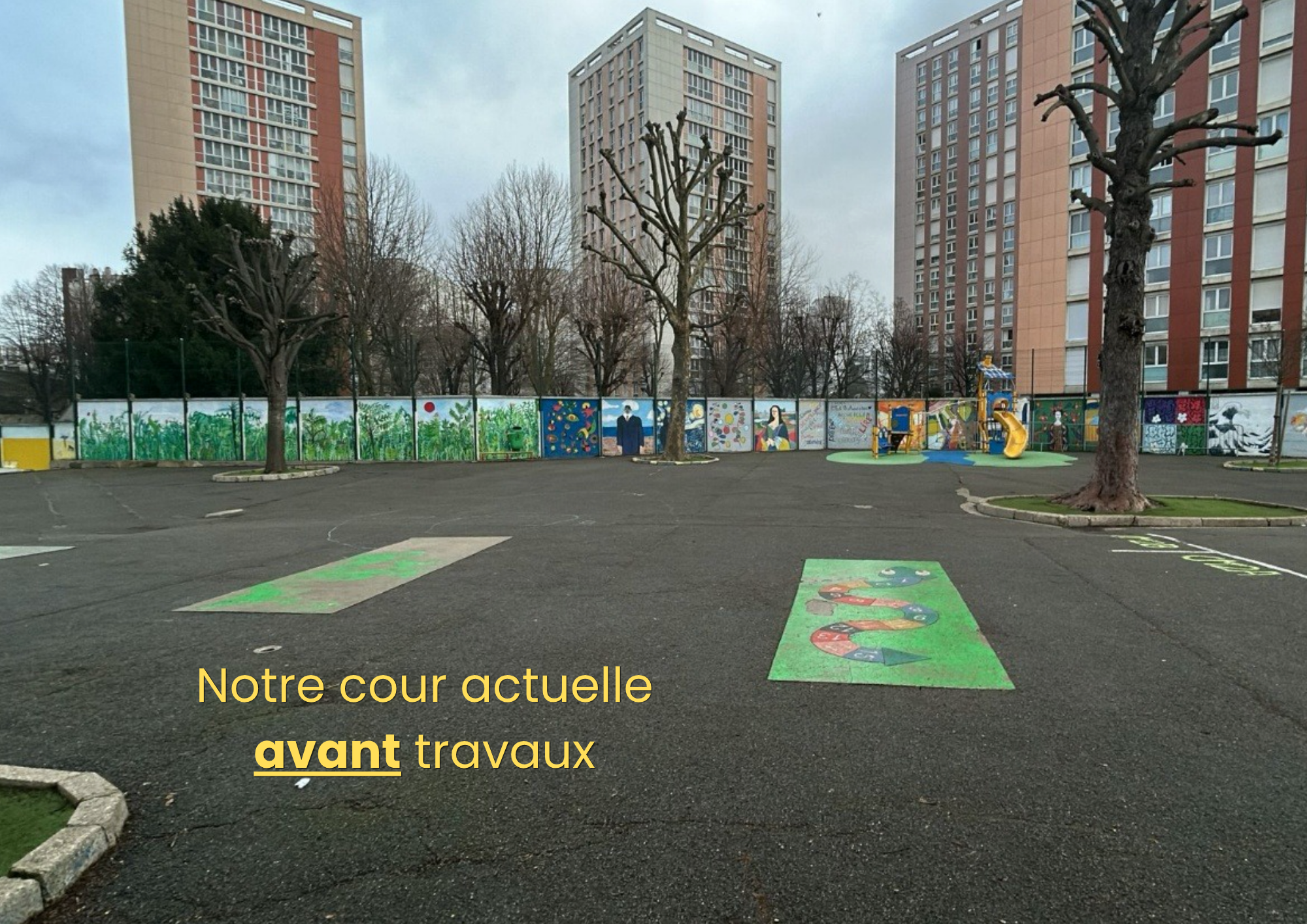 Actuellement, notre cour de récréation est un espace essentiellement minéral. Les élèves y passent leur temps libre lors des récréations, mais les activités d'apprentissage restent confinées entre quatre murs, souvent dans la chaleur et le bruit. Nous sommes convaincus que ce projet ne sera pas qu'un décor mais constituera un outil pédagogique puissant, autant en phase de réalisation que dans son usage ultérieur.