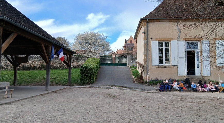 Surplombant les toits du village, notre école se compose de deux bâtiments, l'un plus ancien que l'autre, et d'une grande superficie en partie herborisée, en partie en terre battue. Des tilleuls agrémentent la cour, un potager, un préau fonctionnel ainsi qu'une table et des bancs de bois. Grace à l'APEL de notre école très dynamique et partie prenante de tous nos projets, nous avons également installé une structure de jeu "pirate" dans la cour des maternelles.