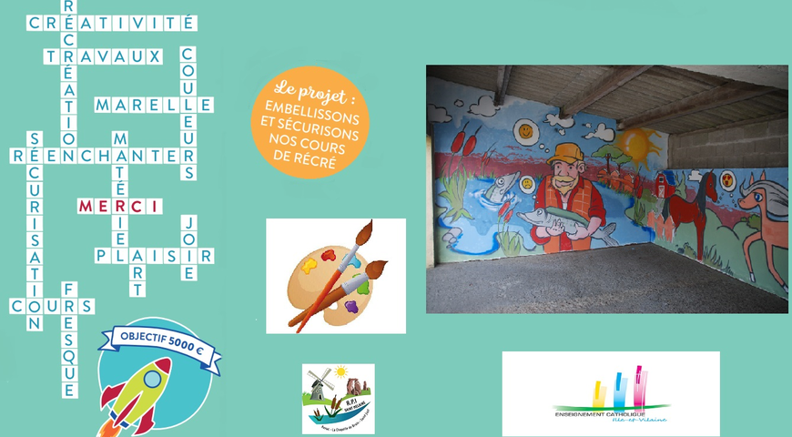 À cette occasion, nous avons pour projet de redonner de la vie à nos cours de récréation, de les embellir, de les enchanter, au travers de fresques murales colorées, de jeux éducatifs peints au sol, et d'équipements plus sécuritaires et pédagogiques.