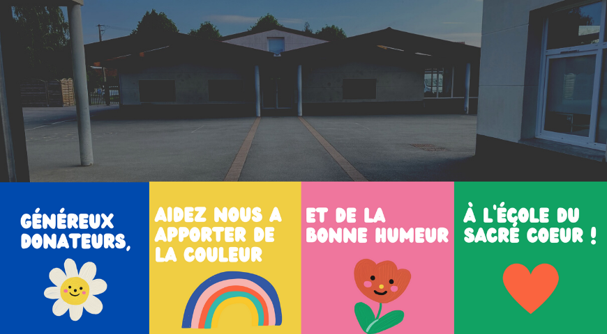 L’école du Sacré Cœur d'Avelin a tout pour être celle de vos rêves, des locaux bien équipés, de super projets, une directrice et des maîtresses en or. Mais voilà la cour de récréation de notre école dont le sol est en béton, est triste, pleine d’enfants, mais vide de couleurs, de jeux et de matériels.
