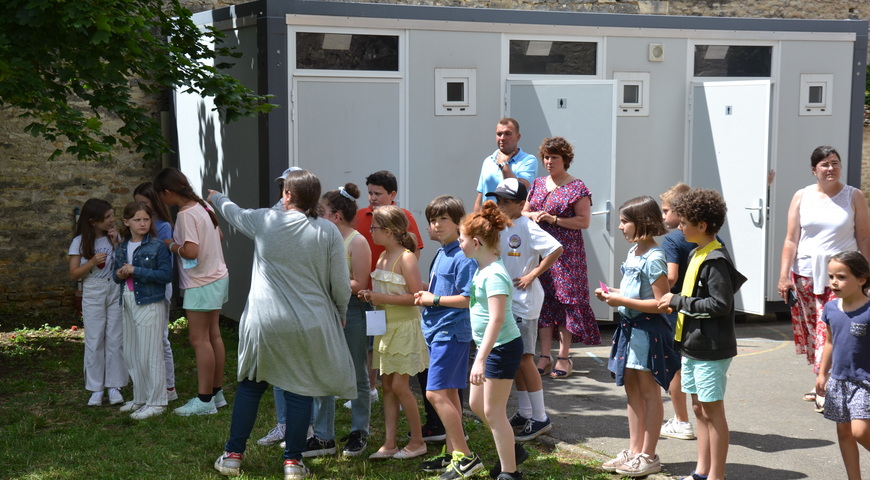 Depuis 6 ans, les toilettes extérieures sont dans un Algéco car les sanitaires existants sont des toilettes à la turque d'un autre âge. Cela ne peut plus durer !