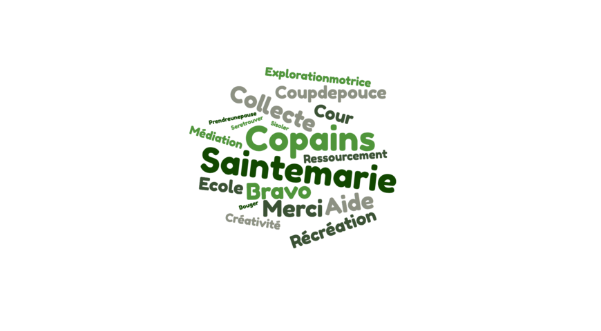 Mais comme vous le savez tous, dans une école, les cours de récréation sont aussi des lieux essentiels ! Et nous avons besoin de votre aide pour les aménager afin qu’elles puissent devenir des espaces de vie où il fait aussi bon se retrouver, jouer, s'émerveiller, découvrir, rire, se reposer...