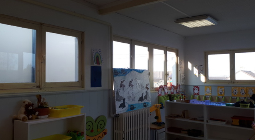 Notre petite école maternelle est en partie construite dans un bâtiment ancien, avec de vieilles fenêtres simple vitrage en bois. A chaque pluie (fréquente en Normandie!) l'eau passe par les fenêtres. L'hiver, nous chauffons également la cour de récréation!